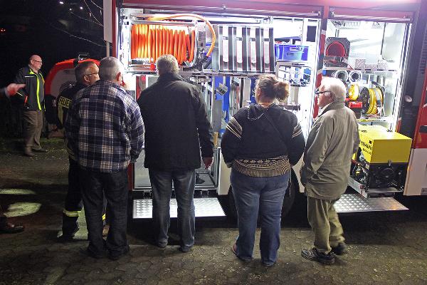Mit Spannung hatte Wehrführer Klaus Theis zusammen mit weiteren Kameraden und interessierten Bürgerinnen und Bürgern vor dem Macherbacher Gerätehaus auf das Eintreffen gewartet, als das neue Fahrzeug mit Blaulicht und Martinshorn dann endlich gegen 18:00 Uhr vorfuhr. Gleich nach der Ankunft wurden die neuen Gerätschaften genauestens unter die Lupe genommen. Zur endgültigen Fertigstellung wird das Einsatzfahrzeug noch mit Gemeindewappen beklebt und die Ausrüstung komplettiert.