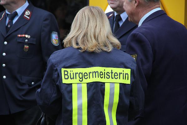 Nebenbei wurde auch das neue Tragskraftspritzenfahrzeug aus dem Löschbezirk Macherbach präsentiert, das erst wenige Tage zuvor aus Chemnitz überführt worden war. "Hier hat die Gemeinde ein Vorführfahrzeug der Firma Ziegler direkt auf der Messe zu einem Preis von 130.000 Euro erworben", sagte die Bürgermeisterin.