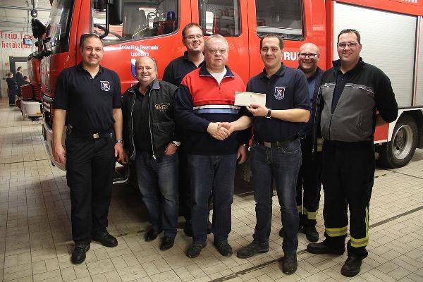 Macherbachs Löschbezirksführer Thomas Theis setzte dann noch einen drauf und stockte den Betrag um weitere 50 Euro auf. Der 1. Vorsitzende der Eppelborner Tafel, Karl-Heinz Rau, der die Spende entgegen nahm, erzählte noch einmal über die wichtige Arbeit der Tafel und dankte allen Spender für die Unterstützung.