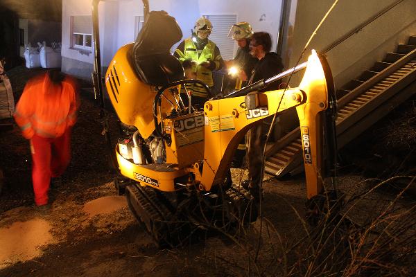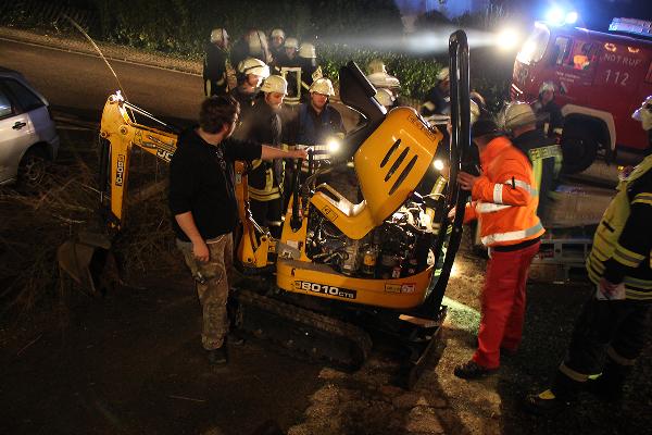 Der Fahrer des Minibaggers wurde bei dem Unfall verletzt und musste mit dem Rettungswagen in ein Krankenhaus gebracht werden. Der Einsatz war für die Feuerwehr nach rund einer halben Stunde beendet.