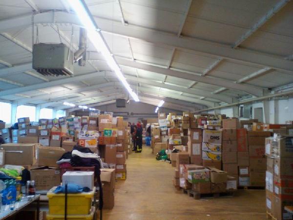 In dem Lager, in welchem eine Vielzahl von Kleidungsstücken in Kartons gelagert werden, wurden diese auf Euro Paletten verladen, mit Klebeband gesichert und mittels Hubwagen in die LKWs des THW verladen. Diese wurden dann in die Landesaufnahmeeinrichtung nach Lebach transportiert und dort in Kellerräume eingelagert.