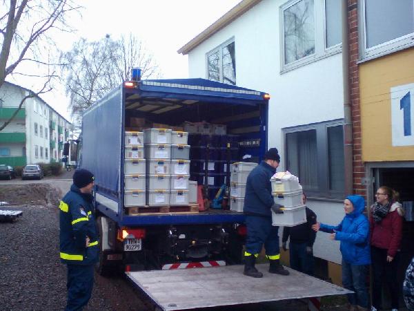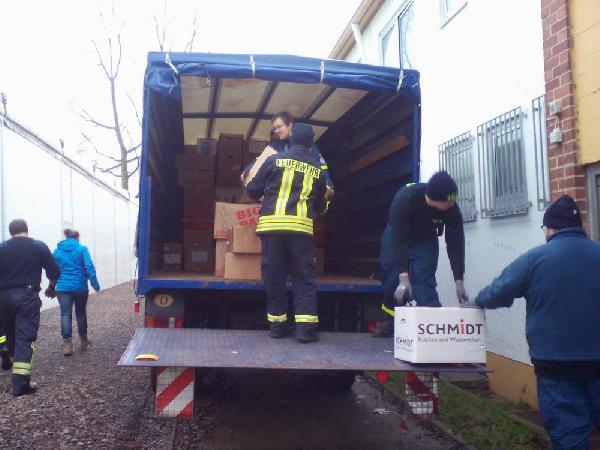 Da absehbar war, dass dies sehr arbeits- und zeitintensiv sein wird, baten die ehrenamtlichen Helfer dieser Einrichtung die Feuerwehr der Gemeinde Eppelborn um Hilfe. Am Samstag, den 16. Januar 2016 waren, neben den Helferinnen und Helfern der Kleiderkammer und Helfern des Technischen Hilfswerkes mit mehreren LKWs auch  8 Kameraden des Löschbezirks Bubach-Calmesweiler und 1 Kamerad aus dem Löschbezirk Eppelborn zur Stelle, um tatkräftig zu helfen.