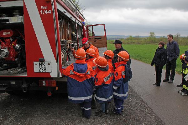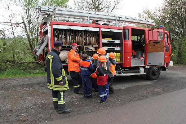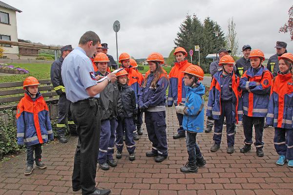 Start der Tour war gegen 13:00 Uhr. Gemeinde-Jugendbetreuer Ralf Schmitt und seine Stellvertreterin Eva-Maria Herrmann begrüßten die rund 50 Jungen und Mädchen aus den Löschbezirken der Gemeinde Eppelborn und gaben den Startschuss. Mehrere Stationen warteten auf die Jugendfeuerwehrleute, verteilt auf unterschiedliche Standorte in Hierscheid und Eppelborn.