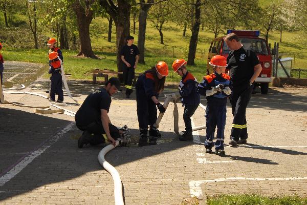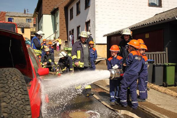 Samstags wurde ein Alarm im Bereich in Am Sandberg und Eschwald in Wiesbach ausgelöst. Bei einem Zimmerbrand in einem Gartenhaus kam der Rauch zwar wieder aus der Nebelmaschine, die jungen Feuerwehrleute zeigten aber beispielsweise beim Schläuche aufrollen und dem Anschließen an den Hydranten, dass alle Handgriffe sitzen. Die Aufgabe, das Übungsobjekt nach vermissten Personen zu durchsuchen und einen Löscheinsatz durchzuführen wurde professionell gemeistert, wovon sich Wehrführer Klaus Theis selbst vor Ort überzeugte.