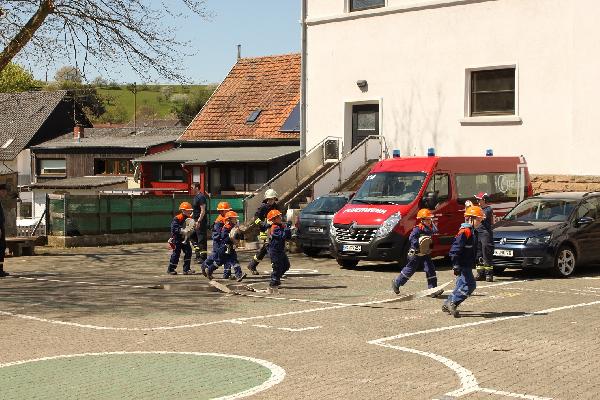 Als am Nachmittag der erste Alarm auf der Wache auflief, wurden sofort die Einsatzfahrzeuge besetzt. Bei einem simulierten Verkehrsunfall mit zwei Fahrzeugen in der Schulstraße in Humes mussten sie technische Hilfe leisten. Auch einen Flächenbrand auf der Wiese zwischen Seitersstraße, Schützenhaus und Uchtelfangerstraße in Humes mussten sie löschen. Die Aufgaben meisterten die Jungen und Mädchen mit Bravour. Insgesamt dreimal musste die Jugendfeuerwehr während Ihrer Zeit im Gerätehaus Humes zu diversen Brandeinsätzen und zur Rettung vermisster Personen ausrücken.