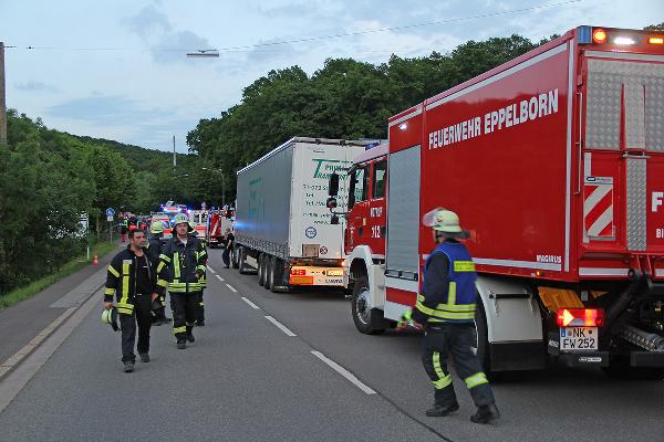 | Eingesetzte Fahrzeuge: | Kreisbrandinspekteur (), Landesbetrieb für Straßenbau (), Bergungsunternehmen (), Rettungshubschrauber Christoph 16 (), Rettungswagen (), Polizei (), Feuerwehr Lebach (), KdoW Wehrführer (03), LF 16 TS (1-44), RW 1 (1-51), GW L2 (1-63), LF KatS (2-44), HLF 8/12 (2-45), LF 8/6 (5-42), MZF (5-61) |