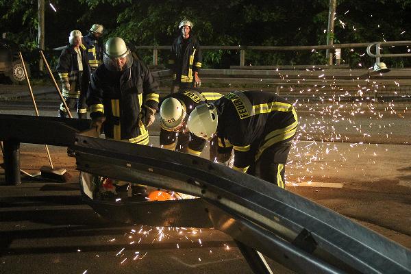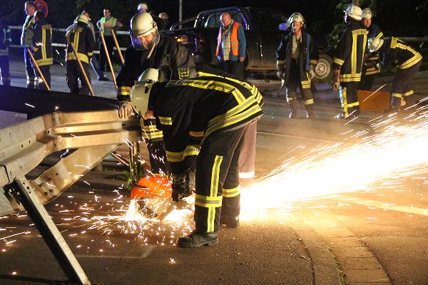 Der Motor des Corsa lief trotz abgezogenem Zündschlüssel weiter und musste unter schwierigen Bedingungen abgestellt werden. Die Fahrzeugbatterien wurden abgeklemmt und auslaufende Betriebsstoffe mit Bindemitteln aufgenommen. Nach der Bergung der Fahrzeuge mussten Teile des Leitplankenpfosten mit einem Motortrennschleifer entfernt werden. Der Gemeindebauhof stellte noch in der Nacht Bauzäune zur Sicherung auf. Wegen der einsetzenden Dunkelheit musste die Einsatzstelle ausgeleuchtet werden. Zur Beseitigung der Ölverschmutzungen auf der Fahrbahn wurde ein Fachunternehmen hinzugezogen.