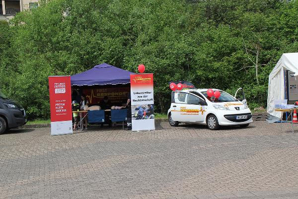Die First Responder Humes-Hierscheid stellten das Projekt „Ein Leben retten“ vor. Der Berufsverband Deutscher Anästhesisten und die Gesellschaft für Anästhesiologie und Intensivmedizin sowie weiteren Partner schulen bei dieser Aktion die Bevölkerung beim Thema Wiederbelebung. Außerdem hatten die First Responder ihr Einsatzfahrzeug als auch ihre Ausstattung mit im Gepäck. Das Deutsche Rote Kreuz, Ortsverein Eppelborn und das Jugendrotkreuz führten Zuckermessungen durch. Die Sozialdienstleiterin informierte über Angebote für Demenzkranke, die das Deutsche Rote Kreuz betreibt, z.B. das Café Vergissmeinnicht und die Kurse in häuslicher Pflege. Wer wollte, konnte sich den Krankentransportwagen des Katastrophenschutzes beim DRK, Ortsverein Eppelborn, ansehen.