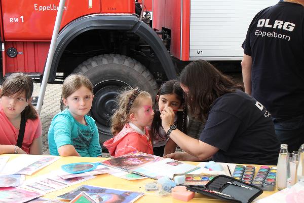 Nach einem leckeren Mittagessen mit Erbsensuppe stellten einige Hilfsorganisationen sich im Rahmen der Imagekampagne der Gemeinde Eppelborn vor. Die Feuerwehr präsentierte die neuen Fahrzeuge, die in letzter Zeit für die Löschbezirke der Gemeinde Eppelborn angeschafft worden waren. Die Deutsche Lebensrettungsgesellschaft, Ortsgruppe Eppelborn, präsentierte ihre Rettungshundestaffel sowie die Hilfsmittel und Gerätschaften, die zu einer effektiven Wasserrettung notwendig sind. Unter anderem hatte die DLRG ihr Boot mitgebracht. Eine Fotoausstellung brachte den Besuchern die Arbeit der DLRG visuell näher.