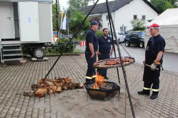 Abends unterhielt die Band Sunflower die zahlreich erschienen Zuhörer bis in die Nacht hinein mit einer rhythmischen Mischung aus Oldies, Schlagern und Countrymusik. Sonntags standen neben einem bunten Programm für die ganze Familie und gewohnt leckerer Versorgung auch eine interessante Übung der Jugendfeuerwehr auf dem Programm. Dabei waren auch der befreundete Musikverein aus Niederauerbach sowie der Musikzug "Fechinger Musikanten" zu Gast. Diese wollten alte Freundschaften pflegen und kamen ihrer Rückverpflichtung gegenüber dem Fanfarenzug nach und leisteten am Feuerwehrfest ihren musikalischen Beitrag.