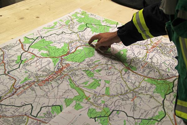 84 Einsätze mussten am Abend insgesamt abgearbeitet werden, eine große Herausforderung für die Einsatzkräfte unter der Leitung von Wehrführer Klaus Theis und seinem Stellvertreter Wolfgang Braun. Die Einsatzleitung wurde in den Räumen einer Dachdeckerfirma in der Ortsmitte von Dirmingen eingerichtet, unterstützt von den Einsatzleitwagen aus Ottweiler und des THW. Schadenslagen, die vom Kreislagezentrum kamen, wurden hier erfasst und an die Fahrzeuge weitergegeben.