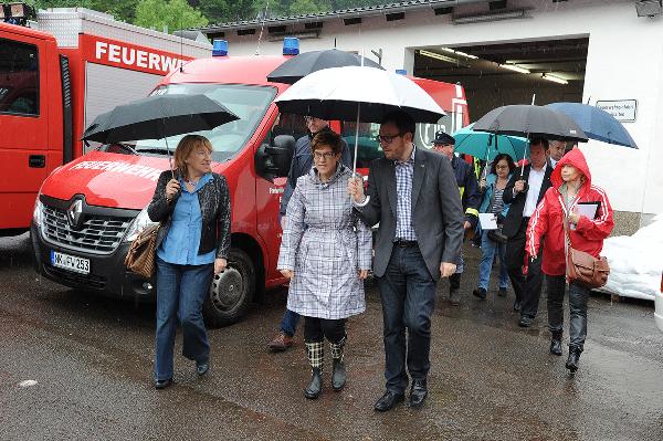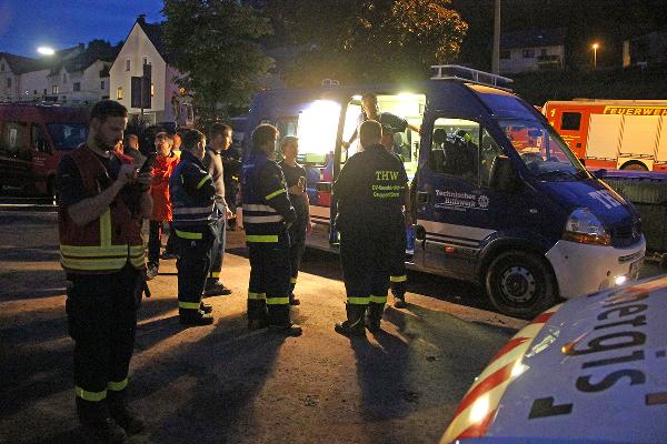 Am späten Abend besuchte Innenminister Klaus Bouillon die Einsatzkräfte und sprach mit Bürgermeisterin Birgit Müller-Closset und Ortsvorsteher Manfred Klein. Sie alle sprachen den beteiligten Einsatzkräften und Helfern Dank und Annerkennung für die hervorragende Arbeit aus. Insgesamt waren rund 170 Kräfte der Feuerwehr, 50 Helfer der THW-Ortsverbände Spiesen-Elversberg, Illingen und Neunkirchen im Einsatz. Das DRK übernahm mit zahlreichen Helfern die Verpflegung der eingesetzten Kräfte. Gegen 1 Uhr in der Nacht konnten die Kameraden der Feuerwehr abrücken, die Helfer des THW übernahmen bis zum Morgen die weiteren Arbeiten.