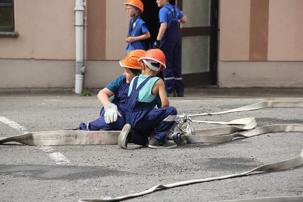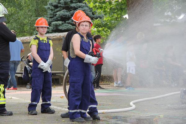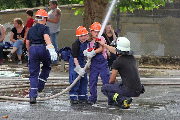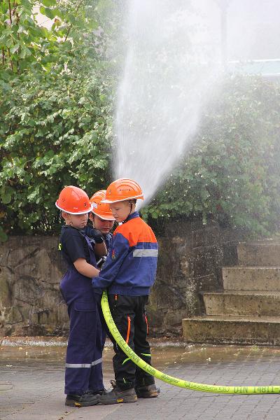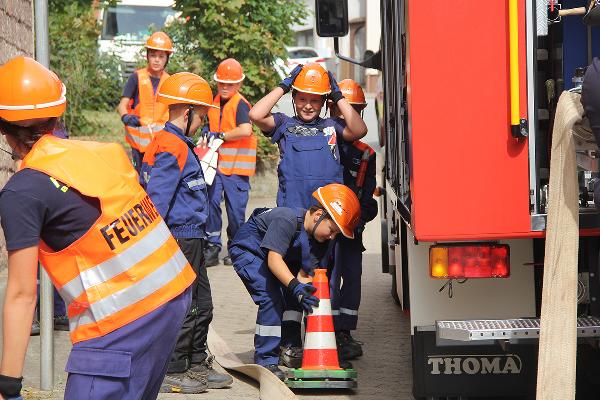 Veranstaltungsort für die gemeinsame Übung war in diesem Jahr der Ortsteil Humes. Im Bereich der Pfarrkirche wurde ein Brand angenommen, der von den Jugendlichen gelöscht werden musste. Schnell wurden die Schläuche ausgerollt und die Wasserversorgung aus Hydranten aufgebaut. Es dauerte nicht lange, bis "Wasser marsch" gegeben wurde und das Wasser aus den Rohren spritzte.