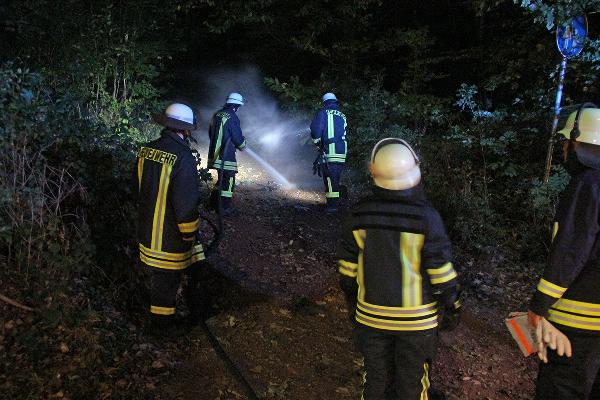 Bei Ankunft an der abgelegenen Einsatzstelle stellte sich heraus, dass kleinere Mengen von Abfällen direkt am Waldrand brannten. Unbekannte hatten diese offenbar zuvor mit einer brennbaren Flüssigkeit übergossen und angezündet.