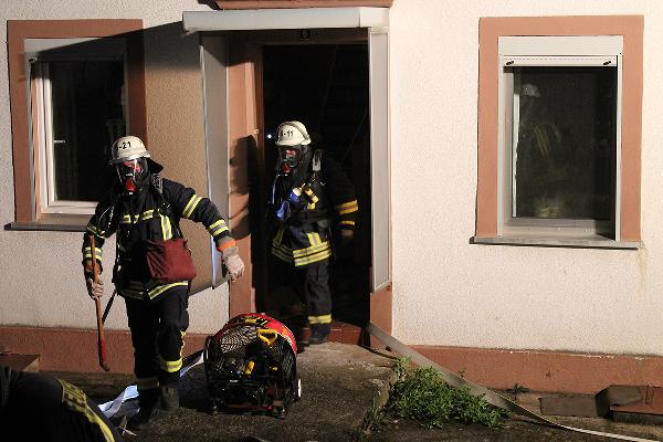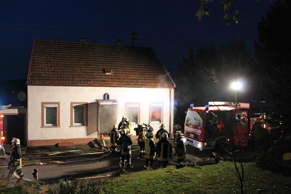 Der Brand war im Heizungsraum im Keller ausgebrochen und konnte sich durch einen Versorgungsschacht schnell bis zum Badezimmer im Erdgeschoss ausbreiten. Vier Personen mussten in dem komplett verrauchten Gebäude gefunden und der Brand bekämpft werden. Mit Atemschutzgeräten ausgerüstet wurde die Räume von mehreren Trupps abgesucht und die vermissten Bewohner schnell gerettet. Die Helfer der First-Responder-Gruppe übernahmen dann vor dem Gebäude die weitere Betreuung und Versorgung.