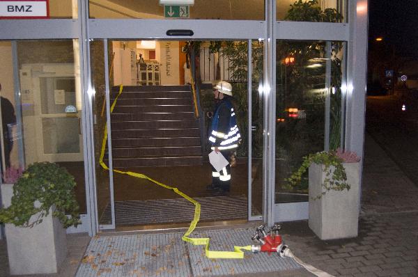 Um zu verhindern dass sich der Rauch im Gebäude verteilt wurde ein mobiler Rauchabschluß eingesetzt. Dieses Gerät hat der Löschbezirk Eppelborn erst im vergangenen Jahr als Spende erhalten. In dieser realitätsnahen Übung hat sich der Abschluß bewährt, da verhindert wurde dass der Rauch in die Bewohnerbereiche eindringen konnte.