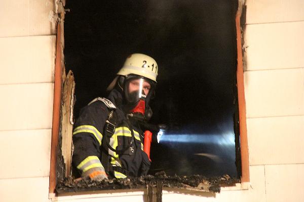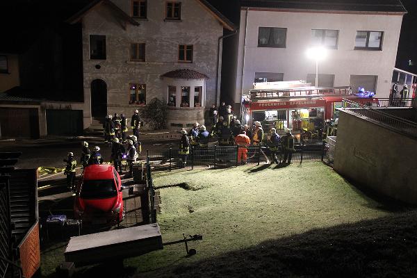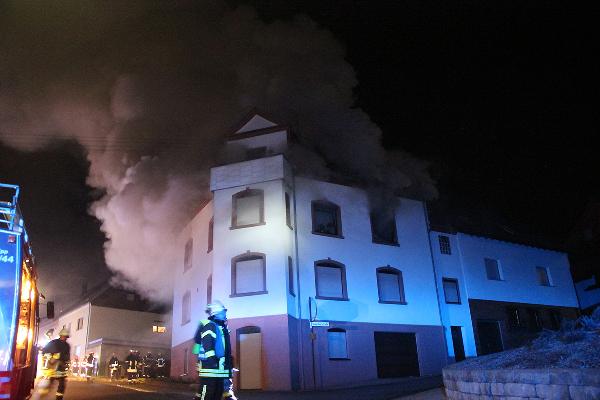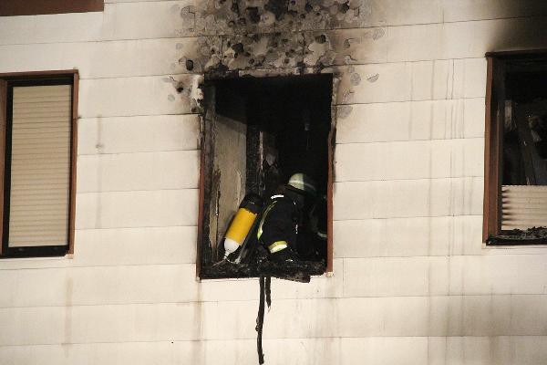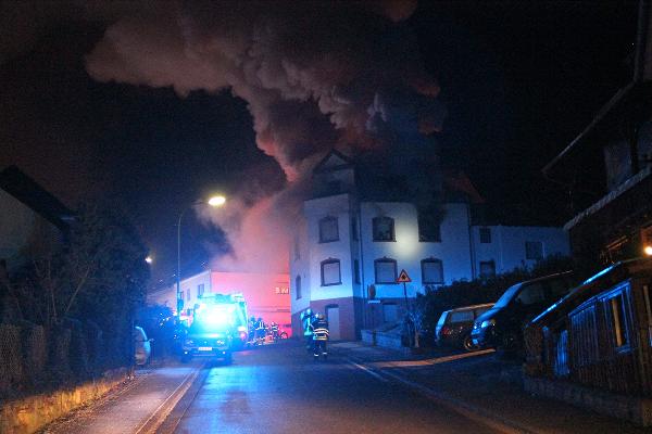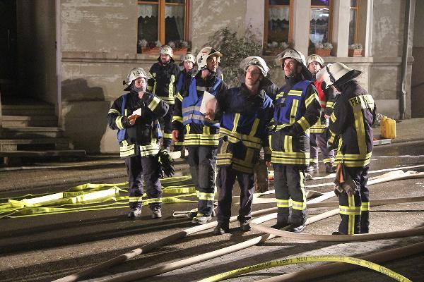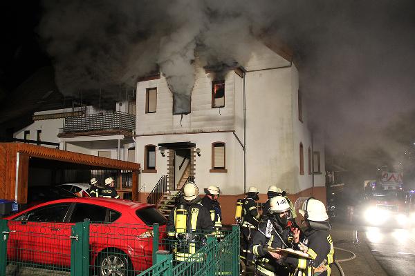 Beim Eintreffen der ersten Einsatzkräfte schlugen Flammen aus einem Fenster im ersten Obergeschoss. Alle Bewohner hatten das Gebäude zu diesem Zeitpunkt verlassen und waren in Sicherheit. Unter Atemschutz drangen Trupps in das Gebäude bis zum Brandherd vor. Das Feuer war augenscheinlich im Bereich der Elektroverteilung ausgebrochen und hatte schnell auf weitere Gebäudeteile und Räume übergegriffen.