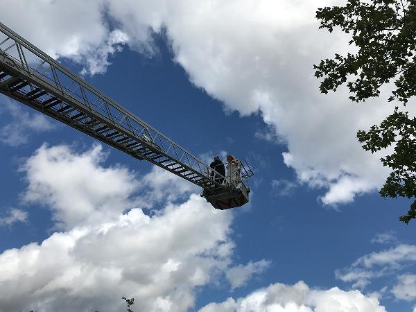 Im Anschluss ging's für die beiden mit der Drehleiter der Feuerwehr Lebach in den siebten (Feuerwehr)-Himmel.