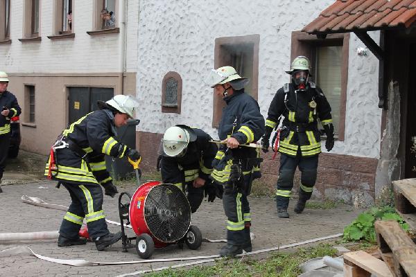 Kurz darauf wurde "Brandalarm mit Menschenrettung" für die Löschbezirke Eppelborn, Bubach-Calmesweiler und Hierscheid ausgelöst, da davon ausgegangen werden musste, dass sich noch eine Person in der verrauchten Wohnung aufhielt.