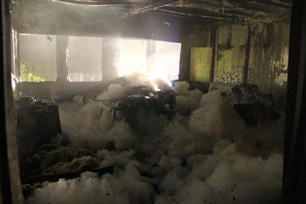 Die Einsatzstelle wurde mehrfach mit der Wärmebildkamera kontrolliert, um letzte Brandnester auffinden zu können. Um ein Wiederaufflammen sicher zu verhindern, wurde der Container zum Abschluss mit Löschschaum geflutet.