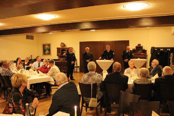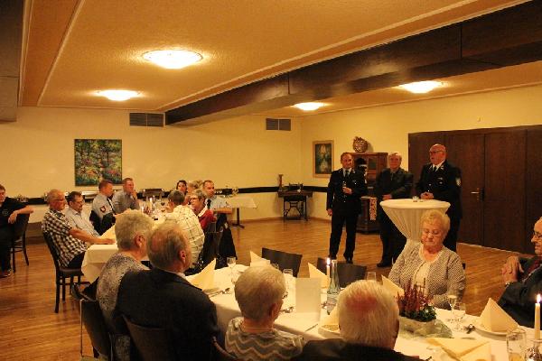 In seiner Begrüßungsrede konnte Löschbezirksführer René Finkler unter anderem den ersten Beigeordneten der Gemeinde Eppelborn Berthold Schmitt begrüßen, der die in Urlaub befindliche Bürgermeisterin vertrat. Des Weiteren waren auch Wehrführer Klaus Theis, der Kreisbrandinspekteur des Landkreises Neunkirchen Werner Thom sowie Ortsvorsteher Peter Dörr der Einladung gefolgt.