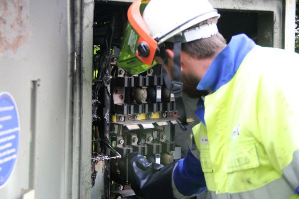 Im Ortsteil Humes schlug ein Blitz in eine Trafostation ein und verursachte einen Brand in einem Schaltkasten. Da keine Gefahr einer Ausbreitung des Feuers bestand, warteten die Einsatzkräfte auf das Eintreffen des Energieversorgers, der die Anlage erst spannungsfrei schaltete. Dann konnte der Schrank geöffnet und das Feuer mit einem Kohlendioxidlöscher bekämpft werden.