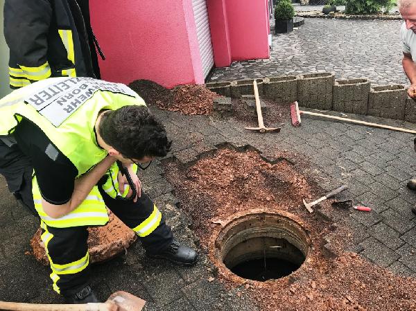 Da in den kommenden Tagen weitere starke Regenfälle vom Deutschen Wetterdienst vorhergesagt wurden, wurde die Zisterne mittels einer Tauchpumpe geleert, das zur Folge hatte, dass sich wieder Wasser darin sammeln könnte.