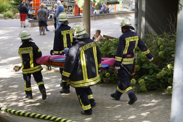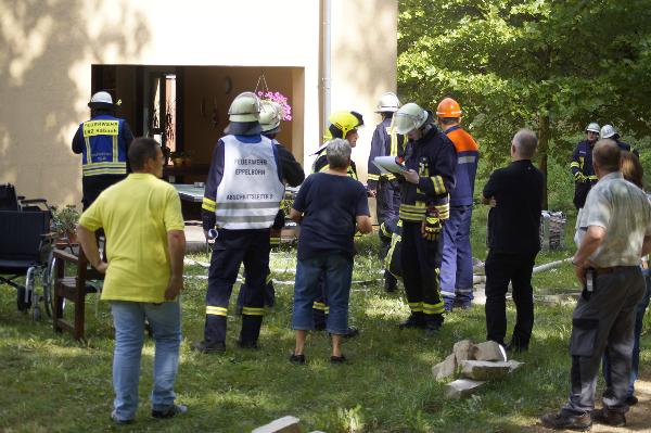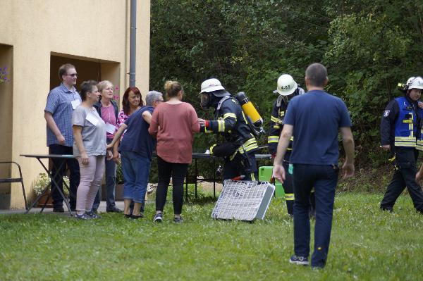 Übungen wie diese helfen daher Einsatzkräften, Pflegepersonal und Heimbewohnern, sich auf solche Lagen vorzubereiten. Insgesamt waren 30 Einsatzkräfte der Feuerwehr und 8 Helfer des DRK eingesetzt. In einer kurzen Nachbesprechung im Anschluss an die Übungen lobten die Übungsleiter ganz besonders die hervorragende Zusammenarbeit mit dem Pflegepersonal, das unvorbereitet Teilnehmer der Übung wurde.