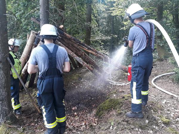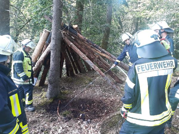 Bei Ankunft der ersten Einsatzkräfte konnte ein Feuer in mitten des Waldes ausfindig gemacht werden. Mit Hilfe einer Kübelspritze konnte der glimmende Waldboden schnell abgelöscht werden. Zur Sicherheit wurde der Betroffene Bereich zusätzlich mit einem C-Rohr genetzt.