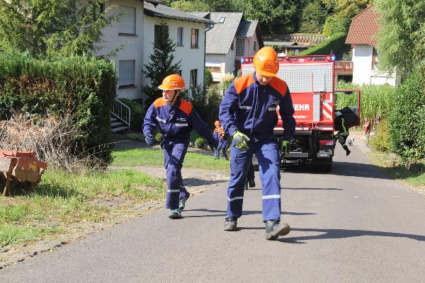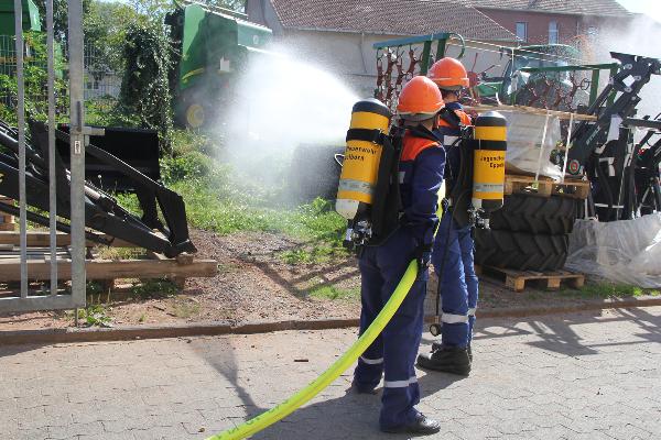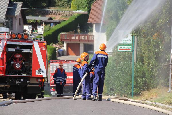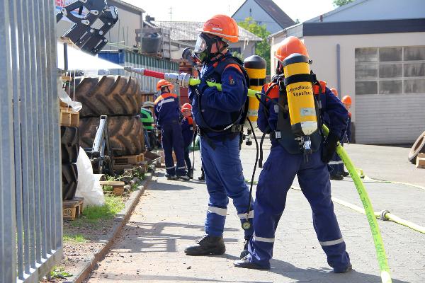 "Schweißarbeiten in einem Betrieb im Ortsteil Macherbach haben einen Brand ausgelöst, der sich schnell auszubreiten droht" lautete die Meldung bei der Alarmierung. Großalarm für die Jugendfeuerwehr! Nacheinander rückten sie mit den großen Löschfahrzeugen zum Einsatzort an. Löschwasser musste aus Hydranten entnommen werden und die Schläuche an die Pumpen der Löschfahrzeuge angeschlossen werden, bevor der Löschangriff mit mehreren Rohren beginnen konnte. Unterstützt wurden die Jugendlichen dabei von ihren Betreuern und Kameraden der Einsatzabteilung.