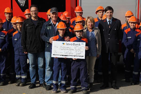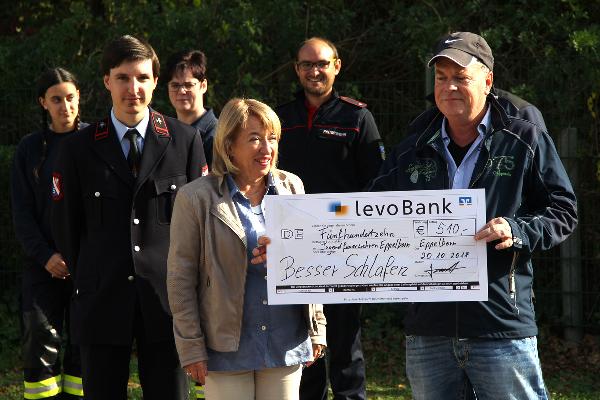 Jetzt konnte Geschäftsführer Michael Lambert im Rahmen der Jugendflamme den Scheck in Höhe von 510€ stellvertretend an Bürgermeisterin Birgit Müller-Closset und den Gemeindejugendbeauftragten Christopher Steil überreichen.