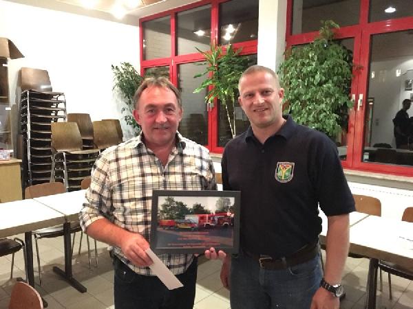 An diesem Abend überreichte der stellvertretende Löschbezirksführer des LBZ Bubach – Calmesweiler, Frank Bonner, ein Geschenk der Kameradinnen und Kameraden an Horst Groß.