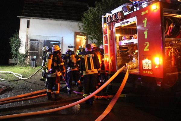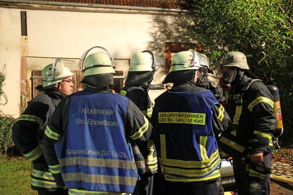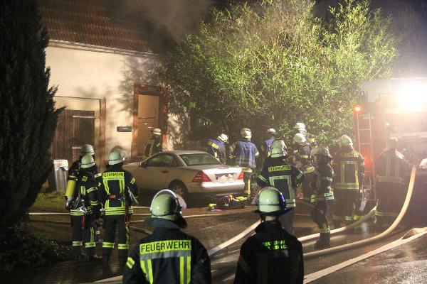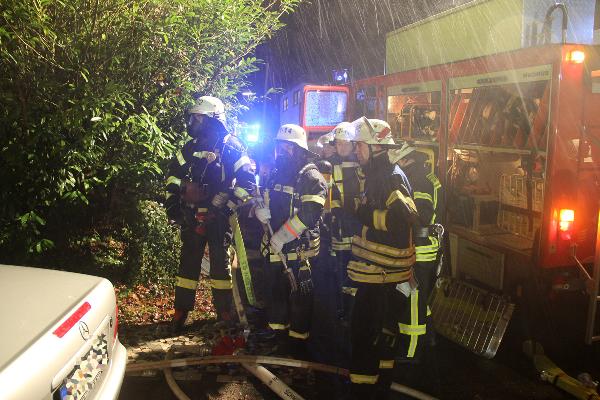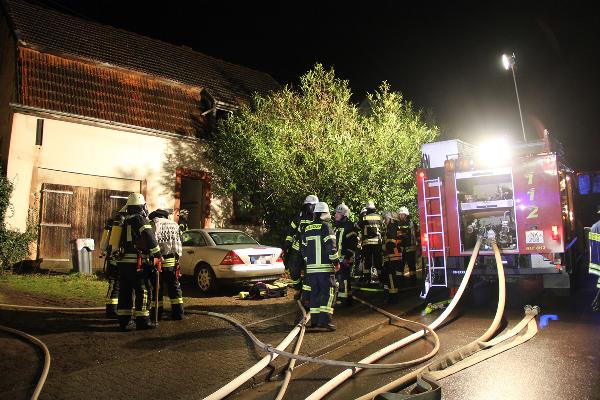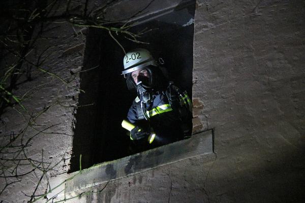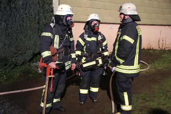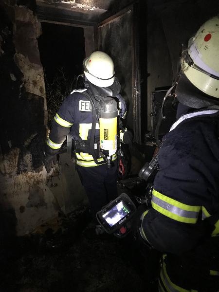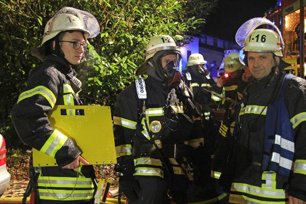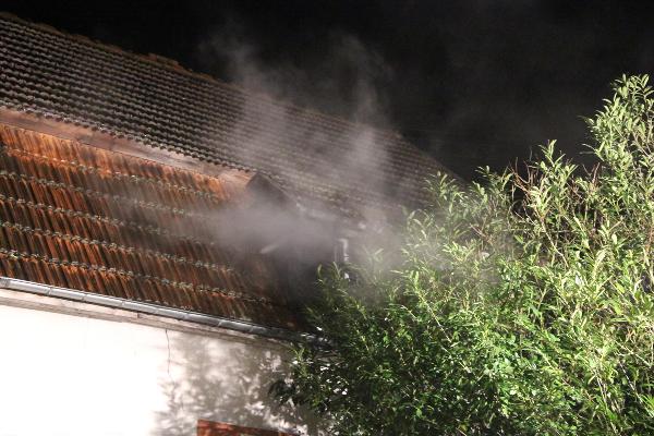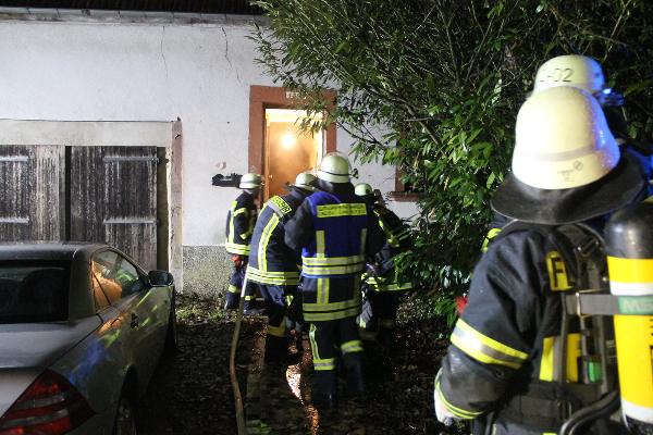 Beim Eintreffen der Einsatzkräfte hatte sich der Anwohner bereits in Sicherheit gebracht. Dichter Rauch drang aus dem Obergeschoss des Gebäudes. Unter Atemschutz drangen zwei Trupps in das Gebäude vor, um den Brandherd im Obergeschoss zu suchen.