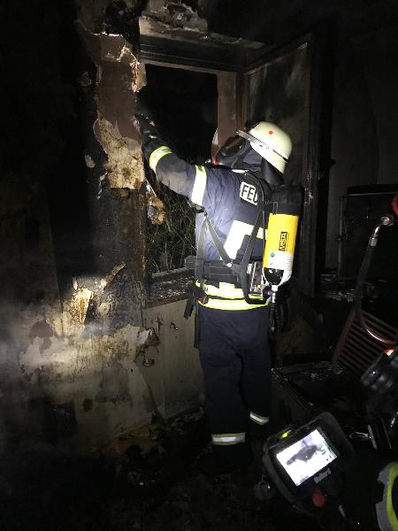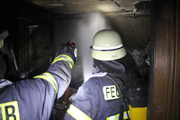In den völlig verqualmten Räumen war ein offenes Feuer zunächst nicht aufzufinden. In einem Zimmer im hinteren Gebäudeteil wurde ein Trupp dann aber fündig und konnte den Brand schnell löschen.