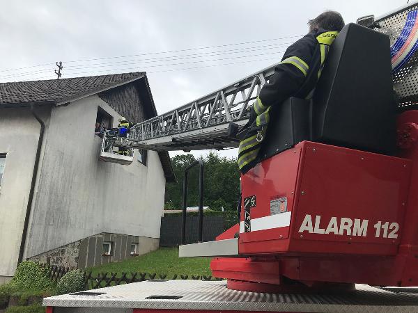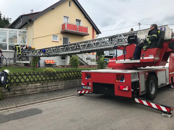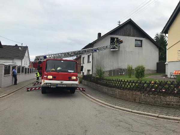 Da ein Transport durch das enge Treppenhaus ausschied, blieb nur die Rettung durch ein Fenster über die Drehleiter. Die Einsatzkräfte aus den Löschbezirken Humes und Hierscheid sperrten dazu die Straße, damit die Drehleiter der Feuerwehr Illingen positioniert werden konnte.