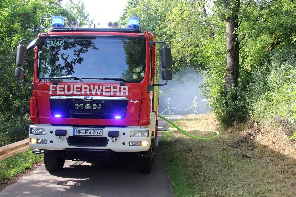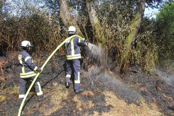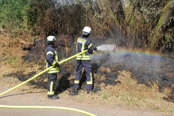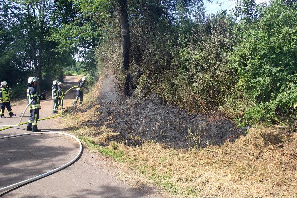 Mit zwei C-Rohren konnte das Feuer schnell gelöscht werden. Besonders im Bereich einer Baumwurzel musste dabei auf versteckte Glutnester geachtet werden. Ein weiteres Ausbreiten des Brandes konnte verhindert werden. Die Brandursache ist unbekannt.