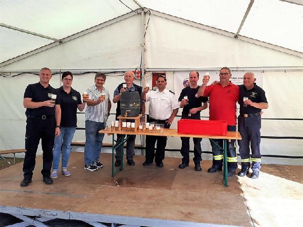 Nach der Siegerehrung am Abend wurde die Veranstaltung dann offiziell mit einem Fassanstich eröffnet. Löschbezirksführer Frank Bonner konnte neben Bürgermeisterin Birgit Müller-Closset, Kreisbrandinspekteur Michael Sieslack, Wehrführer Andreas Groß und Ortsvorsteher Werner Michel zahlreiche Vertreter aus Politik und Gesellschaft zur begrüßen. Bei der anschließenden Sommernachtsparty“ wurden die vielen anwesenden Gäste durch die Band „Party Sound“ unterhalten.