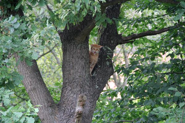 Mit einer Steckleiter wurde zuerst versucht, dem Fellnase eine Möglichkeit zu bieten, aus eigener Kraft wieder auf sicheren Boden zu kommen. Doch die Katze war zu verängstigt und traute sich nicht herunter. Schließlich stieg ein Feuerwehrmann zu dem Tier in den Baum und schnappte es mit einem beherzten Griff.