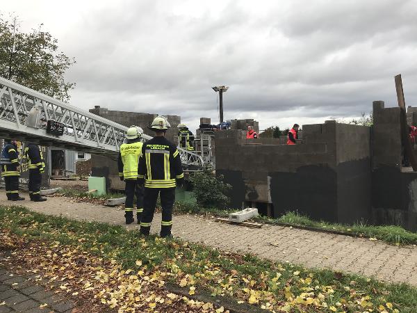 Um den Patienten aufgrund seiner Verletzungen möglichst schonend zu transportieren, wurde neben dem Rettungsdienst auch die Feuerwehr aus dem Löschbezirk Bubach-Calmesweiler sowie die Drehleiter der Feuerwehr Lebach alarmiert. Mit dieser konnte er aus dem Rohbau gerettet und an den Rettungsdienst übergeben.