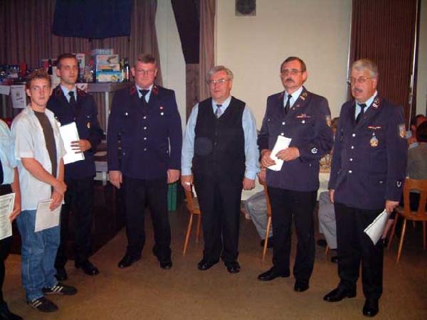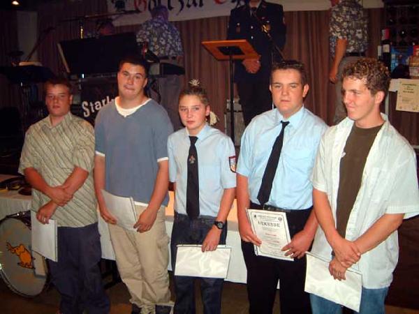 In die aktive Wehr wurden Kai Saar, Andreas Ganster, Stefan Ney, Peter Kolb und Daniel Broy übernommen. Sie bekamen als Abschiedsgeschenk von den Jugendwarten Hans Werner Ruschel und Jochen Couturier ein Gruppenbild der Jugendwehr überreicht.