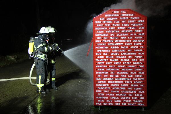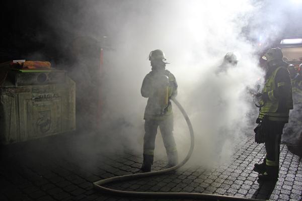 Bei Ankunft der Einsatzkräfte brannte der Container in voller Ausdehnung. Ein Trupp unter Atemschutz kühlte mit einem C-Rohr den Container. Mit einer Säbelsäge wurde der Verschluss des Containers geöffnet, um Zugang zum Inhalt zu bekommen.
