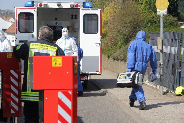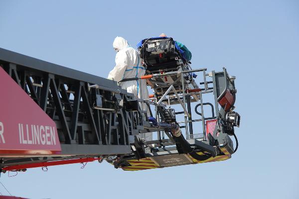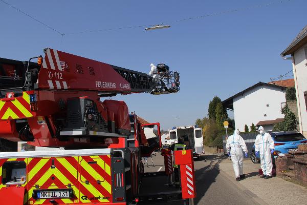 Mit der Drehleiter der Feuerwehr Illingen und unterstützt von Einsatzkräften aus dem Löschbezirk Wiesbach wurde der Mann durch ein Fenster ins Freie gebracht und mit einem Rettungswagen zur weiteren Behandlung in ein Krankenhaus transportiert. Da eine Infektion mit dem Coronavirus möglich war, mussten sich die Einsatzkräfte mit Patientenkontakt mit spezieller Schutzkleidung und Atemschutzmasken ausrüsten.