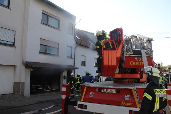 Das Feuer konnte trotz der unübersichtlichen Situation in der voll gestellten Garage schnell unter Kontrolle gebracht werden. Ein Übergreifen des Brandes auf das weitere Gebäude konnte durch den schnellen Einsatz der Feuerwehr verhindert werden.