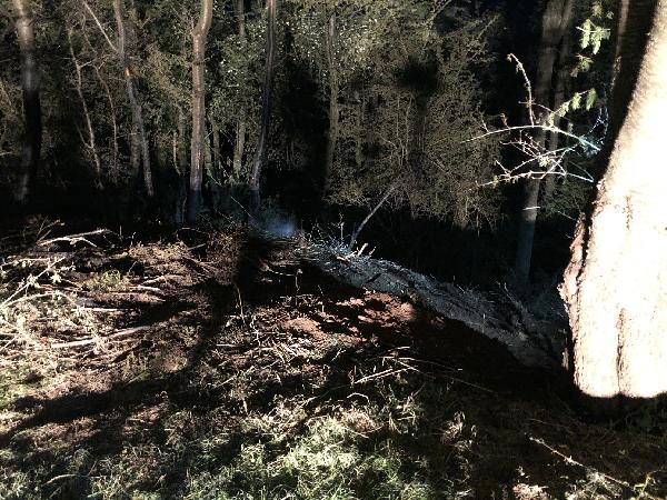 Bei Eintreffen der ersten Einheiten der Feuerwehr konnte eine illegale Ablagestelle für Grünabfälle  an einer Böschung des Waldrandes festgestellt werden, welche unter offenen Flammen und Rauchentwicklung brannte. Aufgrund der derzeitigen Trockenheit breitete sich das Feuer schnell entlang der Böschung aus.