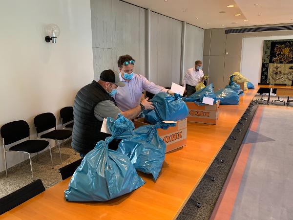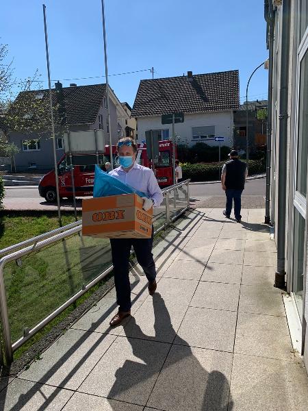 In Eppelborn sind am Wochenende rund 85.000 dieser Masken angekommen, die von Mitarbeitern der Gemeindeverwaltung anhand der Daten des Einwohnermeldeamtes auf die einzelnen Straßen aufgeteilt wurden.