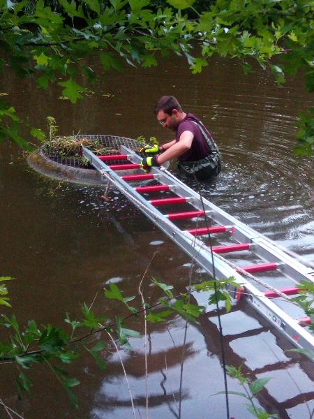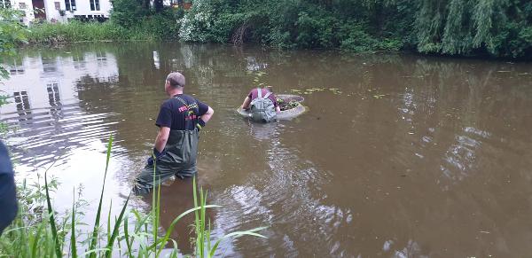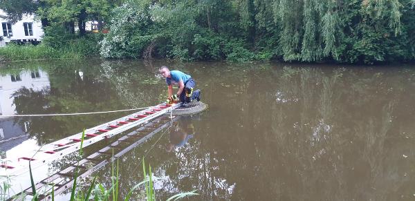 Die alarmierte Feuerwehr konnte das kleine Küken in einer Tiefe von etwas über einem Meter entdecken. Ausgerüstet mit Wathosen entfernten daraufhin zwei Kameraden das Schutzgitter und konnten das Küken mit einer Schaufel aus dem Schacht retten. Es wurde zurück in das Nest gelegt.