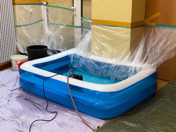 Da die Pumpe der Feuerwehr aber viel zu stark für einen Dauerbetrieb gewesen wäre, wurde eine kleinere Pumpe organisiert, die über einen Niveauschalter das Becken bei überschreiten eines bestimmten Pegels leer pumpte.