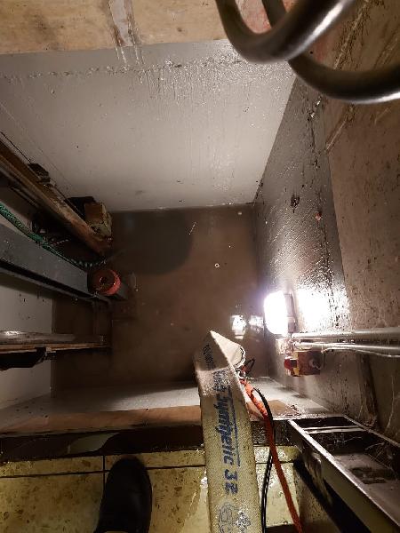 Mit Hilfe einer Tauchpumpe wurde anschließend der Aufzugsschacht vom Wasser befreit.