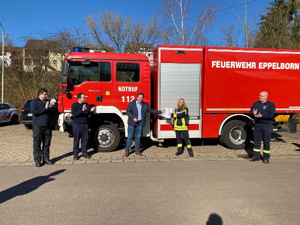Löschbezirksführer Eric Holzer überreichte ihr den ersehnten Funkmeldeempfänger, mit dem sie künftig zu ihren Einsätzen gerufen werden wird. Und von dem Vorsitzenden des Fördervereins des Löschbezirks Eppelborn, Peter Hammerschmitt, erhielt sie als Willkommensgeschenk Jacke und Mütze des Löschbezirks.