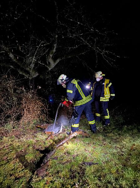 Ein Trupp begab sich in der Dunkelheit zur Erkundung entlang der Freileitung auf die weitläufige Wiesenfläche. Etwa 300 Meter vom Weg entfernt wurden die Einsatzkräfte letztendlich fündig und staunten nicht schlecht.